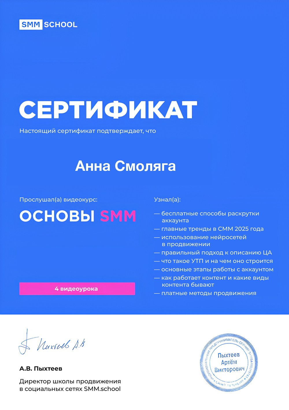 Привет, меня зовут Аня Смоляга и я маркетолог-практик с профильным высшим образованием